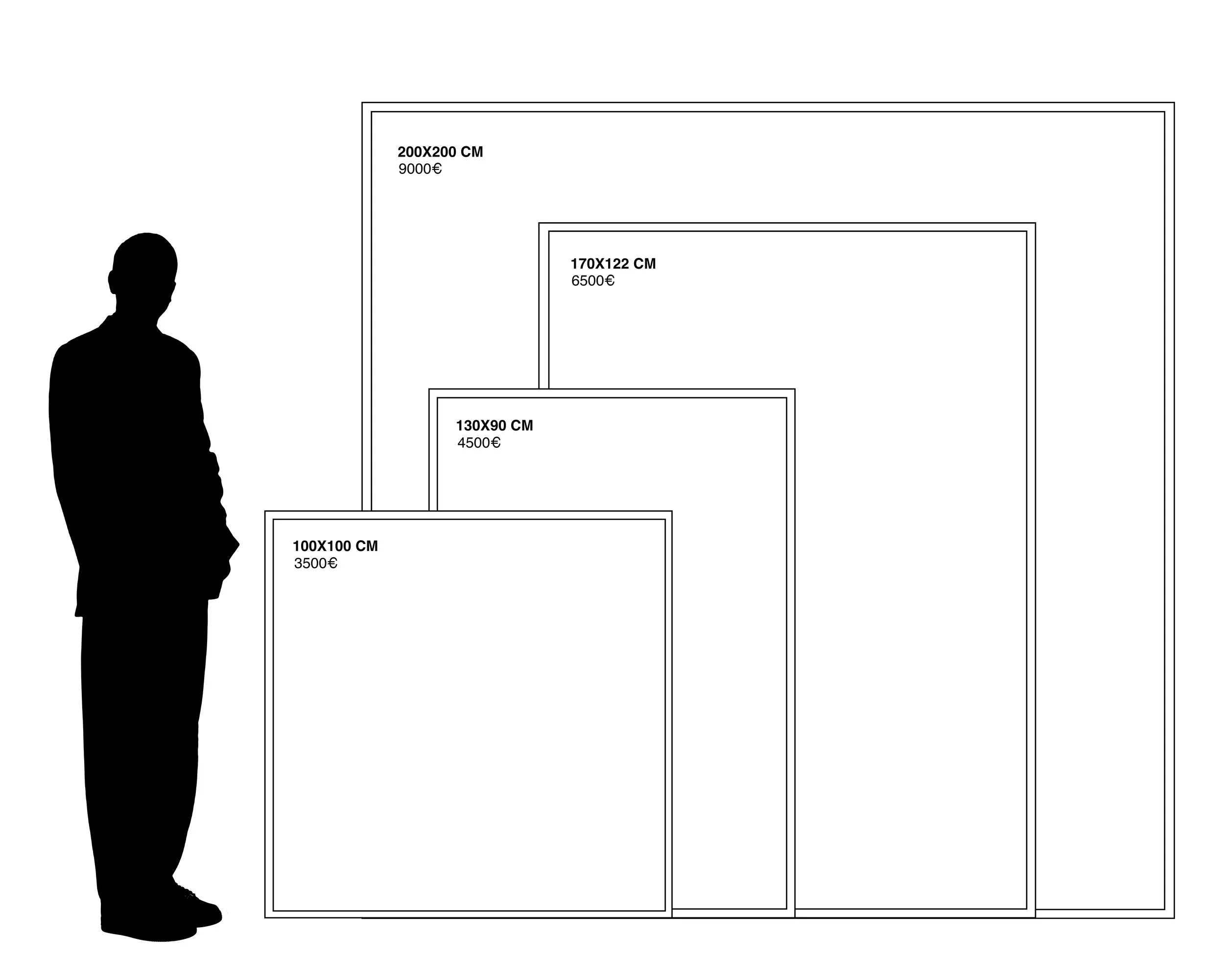 Custom sizes are available, please see the guide below for an indication of scale/price, any combination of dimensions is possible with the starting price of 3500€