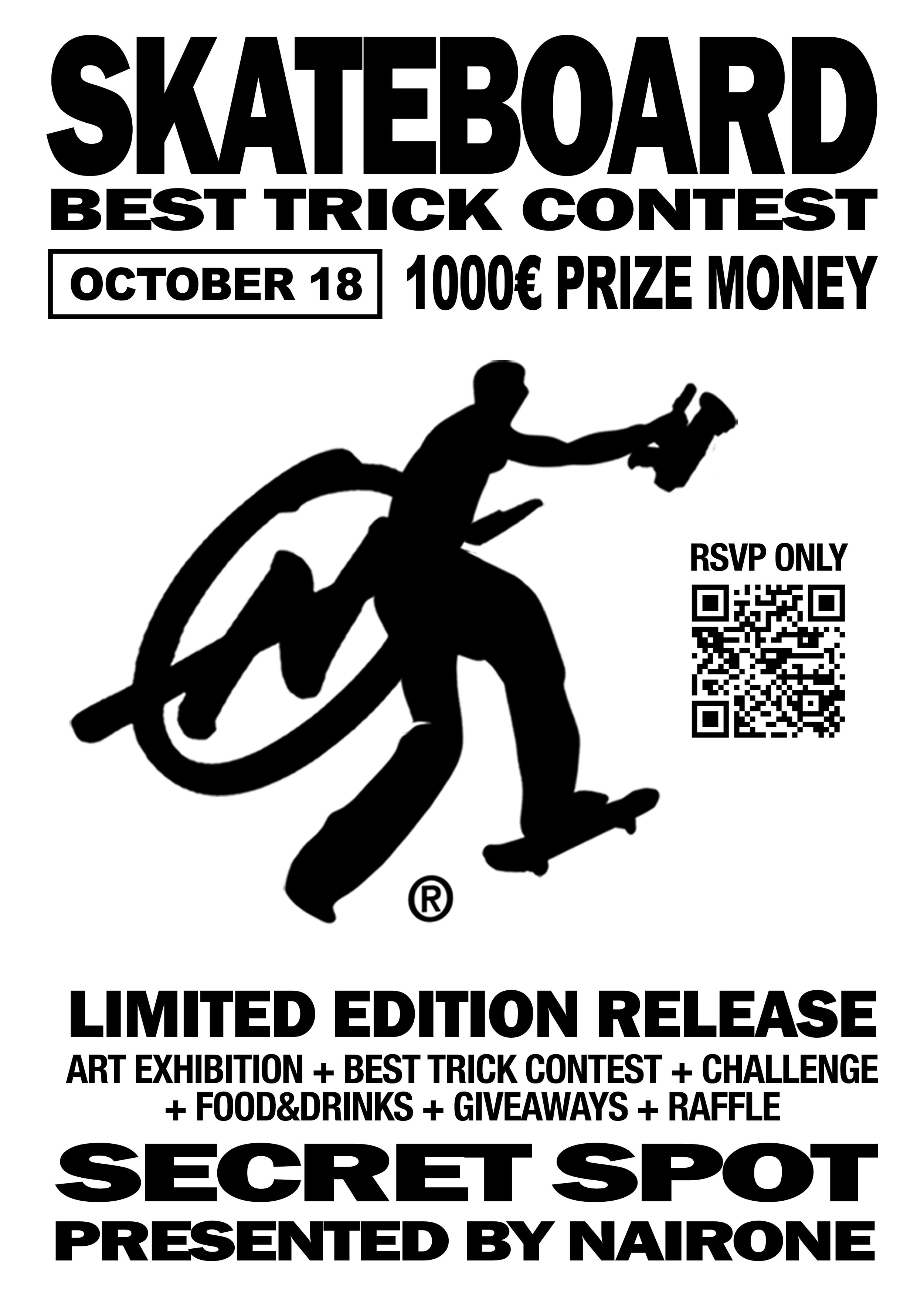 Set inside Nairone’s personal art studio, this private event invites a selected group of guests into the raw, creative universe of the artist – merging skateboarding culture, art, and live performance. This is more than a product launch – it’s a statement about where Nairone truly comes from and what drives his work today.